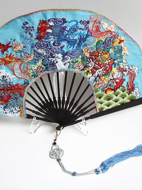Le vent venu d'Asie. L'histoire de l'éventail est fascinante, il a traversé les siècle et subit des utilisations diverses. En Chine, les premiers écrits sur les éventails datent de la dynastie Jin (265- 420). Son aspect rigide évoque les deux créations traditionnelle du fanzi. L'une rigide, l'autre pliable utilitaire qui regroupe plus de dix corps de métiers pour son savoir-faire, il est un élément essentiel de l'art de vivre et de la culture en Asie. Il reste l'objet indissociable des rites traditionnels de la Chine et du Japon, l'éventail est un accessoire fondamental dans le théâtre, dans l'art narratif rakugo, dans la danse traditionnelle coréenne, de même que dans certains arts martiaux. Ces codes sont brodés dans un rythme visuel proche du manga faisant référence aux maîtres peintres, à la calligraphie et aux couleurs franche des tableaux publicitaires asiatiques. Néanmoins il est le moyen écologique de faire face au réchauffement climatique en toute circonstance, si il est élégant c'est encore mieux.