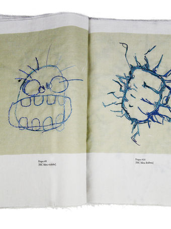 Tout débute d'un jeu avec mes enfants. Choix de dessin fait sur une centaines réalisés au traits à mains levées sans discontinuer, le plus rapidement possible avec différents cercles pour n'avoir qu'un jet de crayon simple. Naissance d'une histoire et mise en avant du travail textile qui ne leur parlait pas vraiment2ème challenge à la conception de ce patchwork. Et qu'en est -il des petits maux ?